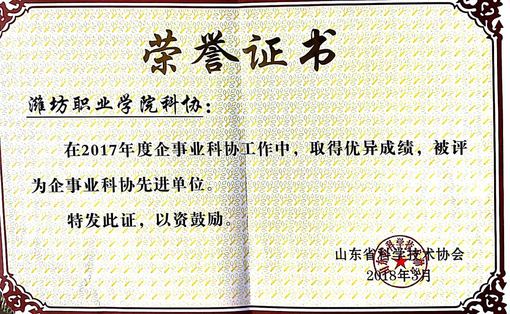 近日,山东省科学技术协会召开2018年全省科协学会和企事业科协工作会议,beat365被评为“2017年度山东省企事业科协先进单位”,全省共22所高校入选。