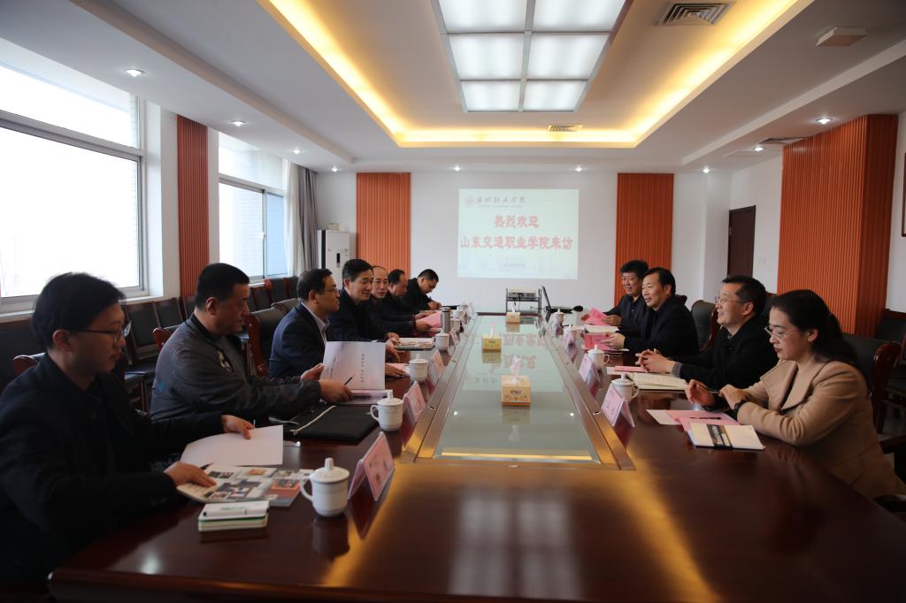3月13日下午,山东交通职业学院副院长单志强一行8人来beat365考察交流。副院长贺志强在会议室会见客人。学生处、招生就业处、后勤服务处负责同志参加座谈。