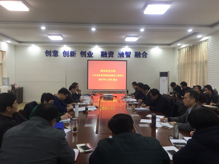 1月30日上午,学院优质高职院校建设2017年度总结会议在奎文校区大学生创业中心召开。院长王家爱,副院长赵君堂、贺志强、李瑞昌,纪委书记郭晓辉,党委委员、办公室主任谭明出席会议。各重点建设项目和专业群负责人、各二级学院院长、优质校建设办公室全体成员参加会议。副院长李瑞昌主持会议。