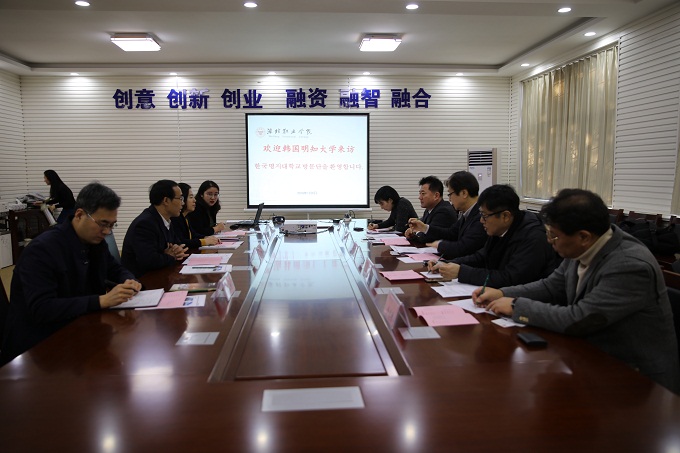 1月9日,韩国明知大学国际交流院院长朱星一、研究生院院长朴天悟等一行5人来beat365访问,副院长赵君堂在奎文校区会见了客人,国际交流与合作处相关负责同志参加了座谈交流。