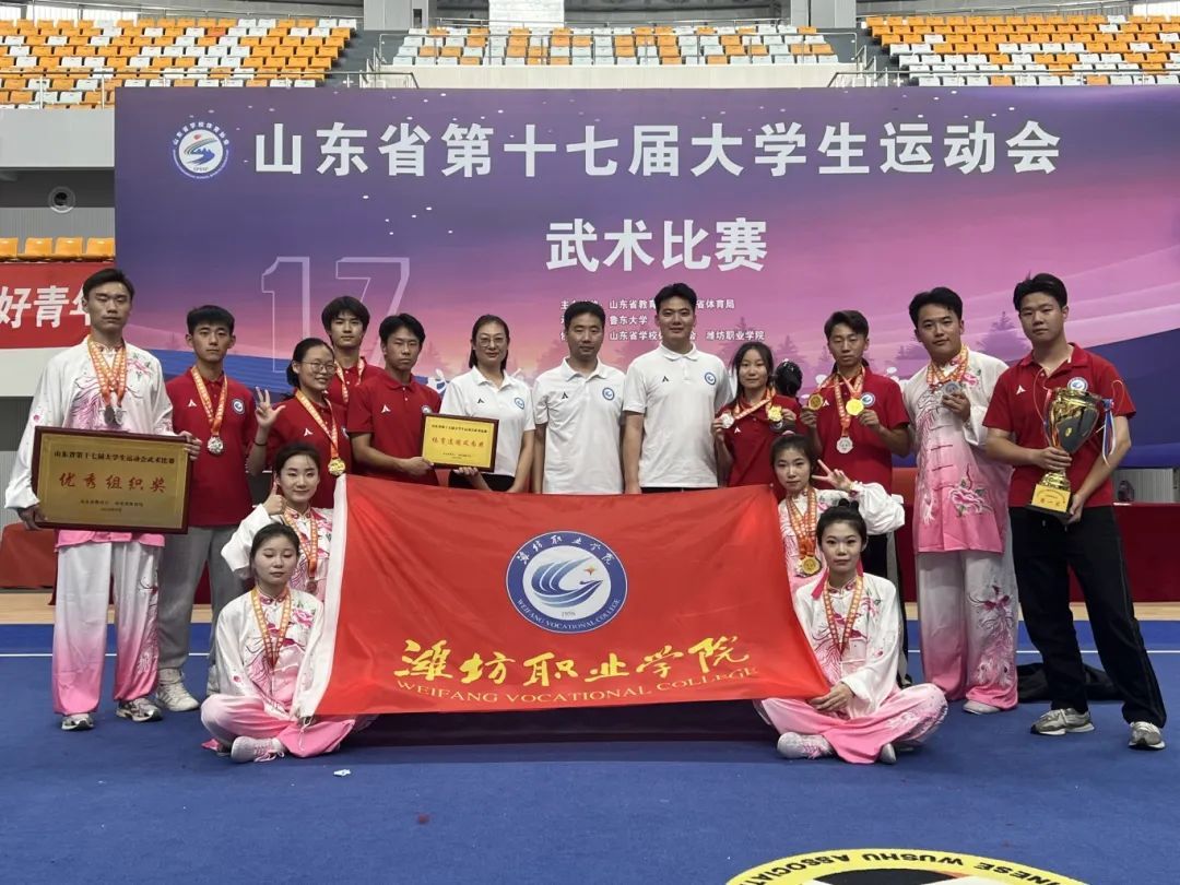 据悉,山东省大学生运动会是由山东省教育厅、山东省体育局主办,每三年举办一届,是全省规格最高、规模最大、竞技水平最强、社会关注最广、辐射带动作用最显著的全省大学生体育盛会。本次山东省第十七届大学生运动会充分展现了beat365中国官方网站训练体系的高水准、高水平、高质量,优异的成绩更是学校竞技体育综合实力提升和人才培养质量提升的重要体现。在今后的比赛中,beat365中国官方网站将继续发扬中华体育精神和奥林匹克精神,充分发扬“崇实尚行敢于争先”的潍职精神,继续拼搏,再创佳绩。