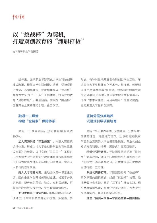 以“挑战杯”为契机,打造双创教育的“潍职样板”