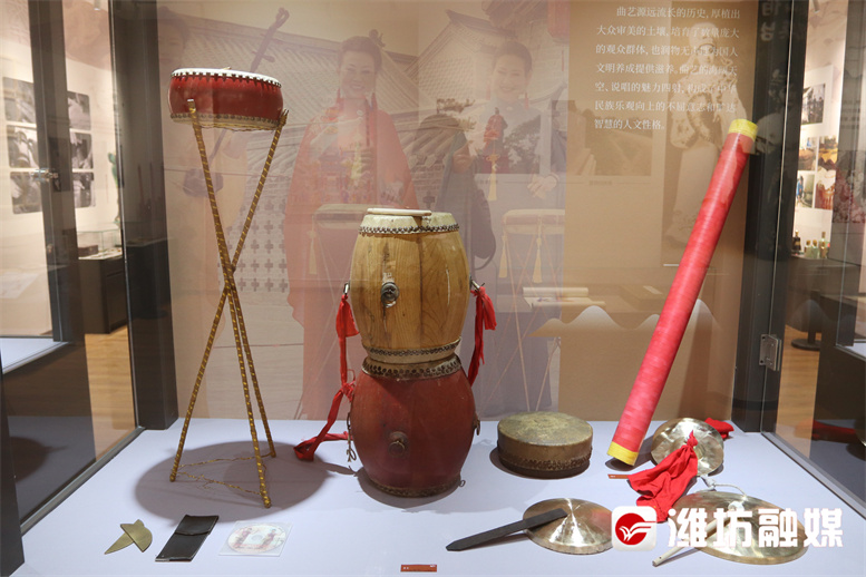 馆陈以“典藏潍州”为主题,分为技忆芳华、国风有形、演艺华章、四时工巧和美在民间五大板块,从杨家埠木版年画的木版,到传统戏剧的唱本、乐谱,以及乐器书鼓、鼓架,再到民间文学文献等,200余件具有历史年代感的非遗珍品,全面展示了我市市级以上非遗项目及版本资源,呈现了潍坊非遗生态的整体面貌,也见证了“古潍州”的历史和繁华。