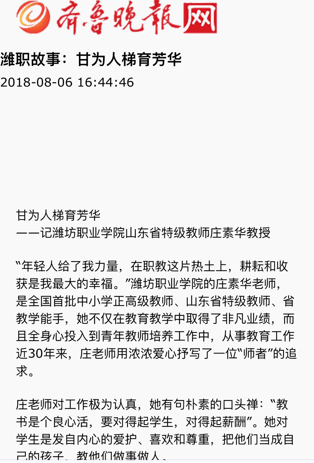 [齐鲁晚报]甘为人梯育芳华——记beat365中国官方网站山东省特级教师庄素华教授