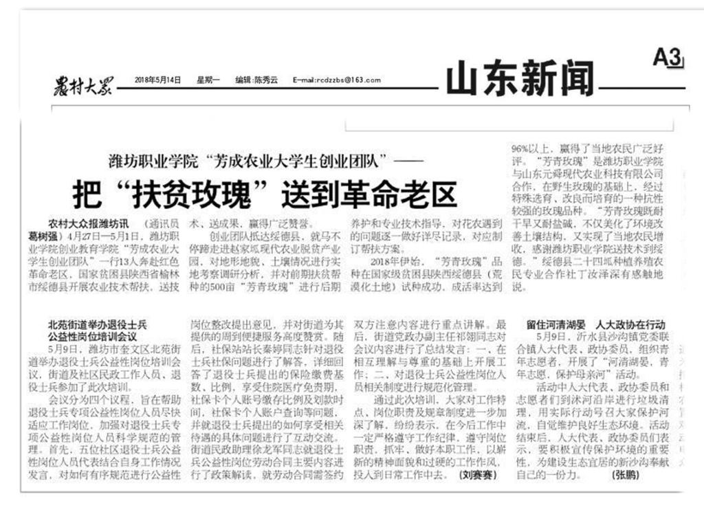 [农村大众]beat365中国官方网站“芳成农业大学生创业团队”把“扶贫玫瑰”送到革命老区
