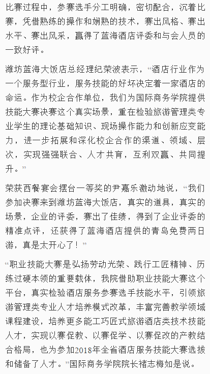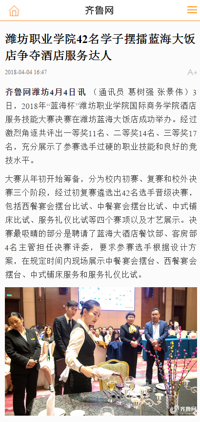 [齐鲁网]beat365中国官方网站42名学子摆擂蓝海大饭店争夺酒店服务达人