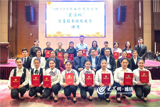 大众网4月4日讯(通讯员 葛树强)4月3日,2018年“蓝海杯”国际商务学院酒店服务技能大赛决赛在潍坊蓝海大饭店成功举办。学院副院长贺志强出席颁奖仪式,蓝海酒店集团人力资源中心副总经理杨兆永讲话,潍坊蓝海大饭店总经理纪荣波致辞,国际商务学院主要负责同志发言,经过激烈角逐共评出一等奖11名、二等奖14名、三等奖17名,充分展示了参赛选手过硬的职业技能和良好的竞技水平。