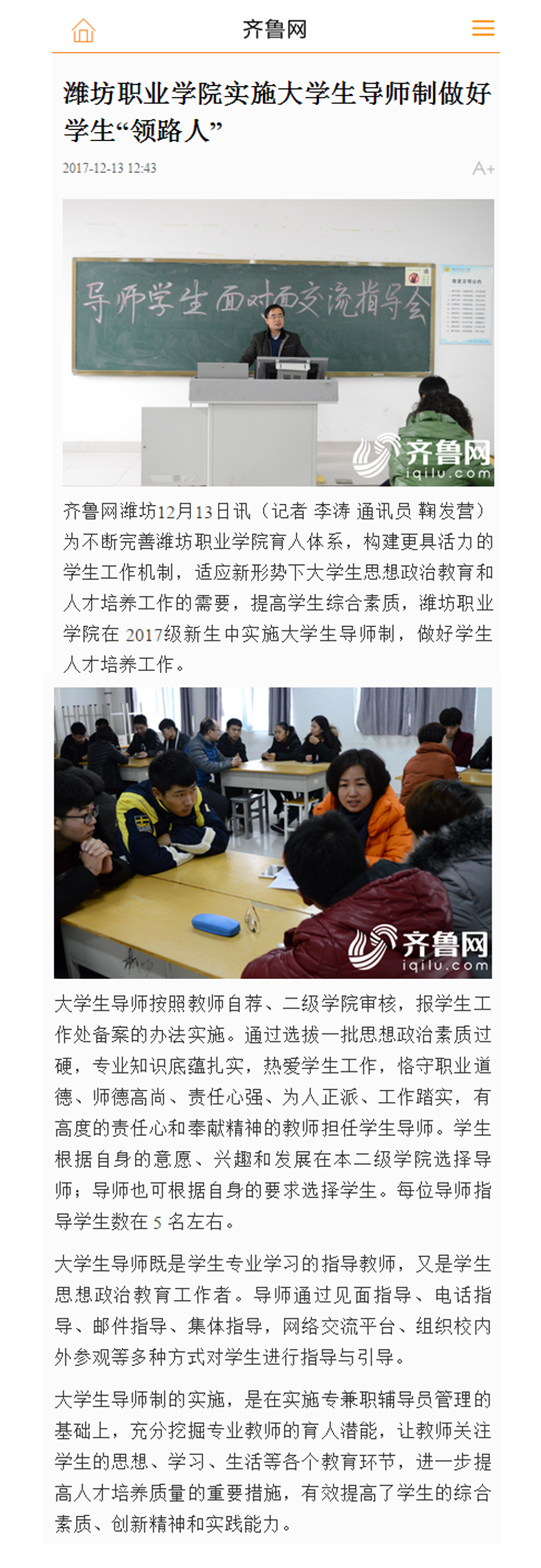 [齐鲁网]beat365中国官方网站实施大学生导师制做好学生“领路人”
