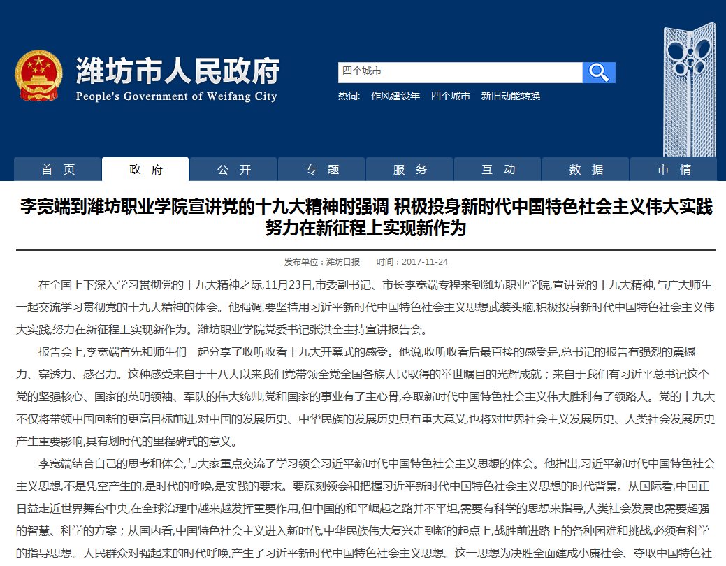[潍坊市政府网站]李宽端到beat365中国官方网站宣讲党的十九大精神时强调 积极投身新时代中国特色社会主义伟大实践努力在新征程上实现新作为