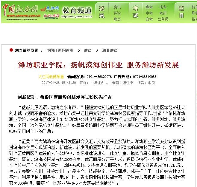 全国主流网媒聚焦服务区域发展的“潍坊职院”模式