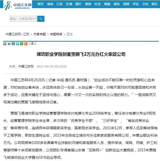 潍职创业创客:大学融合军旅生涯创办家政服务公司