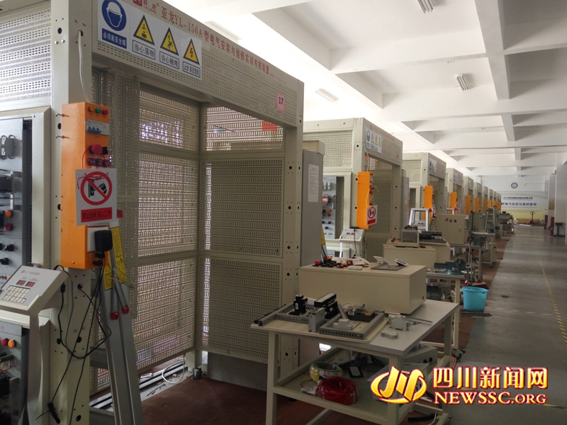 图为:记者们参观学校特色专业