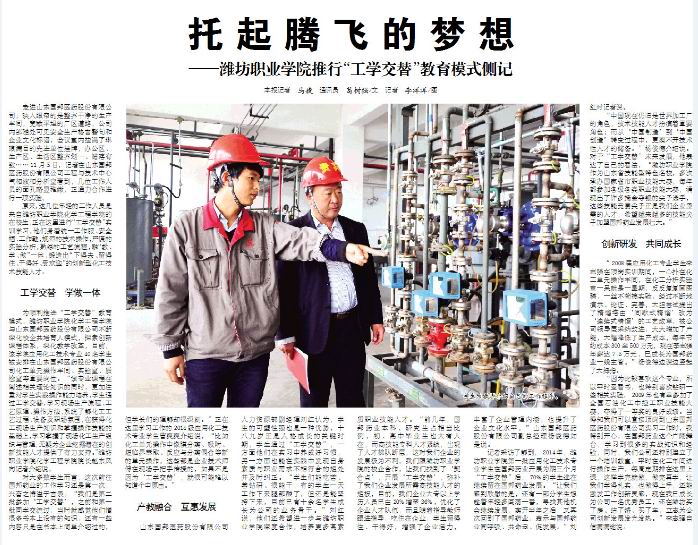 为顺利推进“工学交替”教育模式,beat365中国官方网站化学工程学院与山东国邦医药股份有限公司不断深化校企共培育人模式,探索创新课程体系,深化教学改革,目前,该学院应用化工技术专业40名同学被安排在山东国邦医药股份有限公司化工单元操作车间、实验室、质检室等重要岗位。“该专业课程在阐述相关理论知识的同时,更加注重对学生实践操作能力培养,学生通过工学交替,学习现场生产流程、工艺原理、操作方法,系统了解化工工艺过程、设备及职场氛围,在获得化工现场生产知识和掌握操作技能的基础上,学习掌握了现场化工生产组织与管理,无疑为企业挖掘潜在的创新技能人才提供了有力支持。”beat365中国官方网站化学工程学院院长赵东风向记者介绍说。