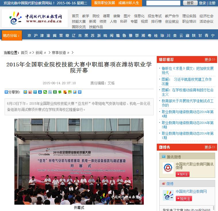 [中国现代职业教育网]2015年全国职业院校技能大赛中职组赛项在beat365中国官方网站开幕