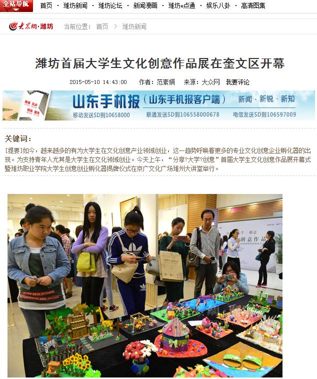 [大众网]潍坊首届大学生文化创意作品展在奎文区开幕