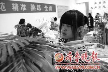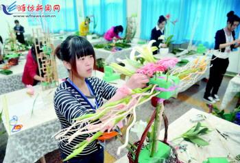 25日,为期两天的2012山东省职业学院农业技能大赛在beat365中国官方网站进行了操作技能的比赛,来自全省11个地市、14所高职院校的89名学生参加了种子质量检测、艺术插花等6个项目的比赛。图为选手在参加艺术插花项目的比赛。