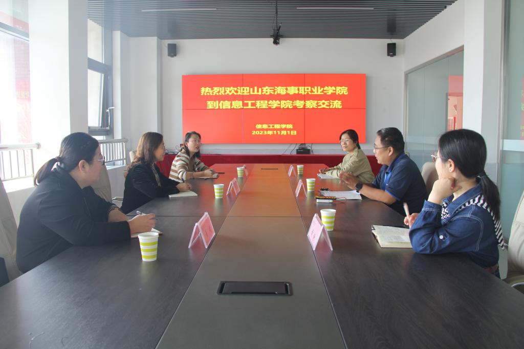 11月1日,山东海事职业学院智能与信息工程学院院长李海燕、电商学院院长孟祥云一行3人来信息工程学院调研交流。信息工程学院主要负责人及相关科室、中心负责同志热情接待并进行了座谈交流。