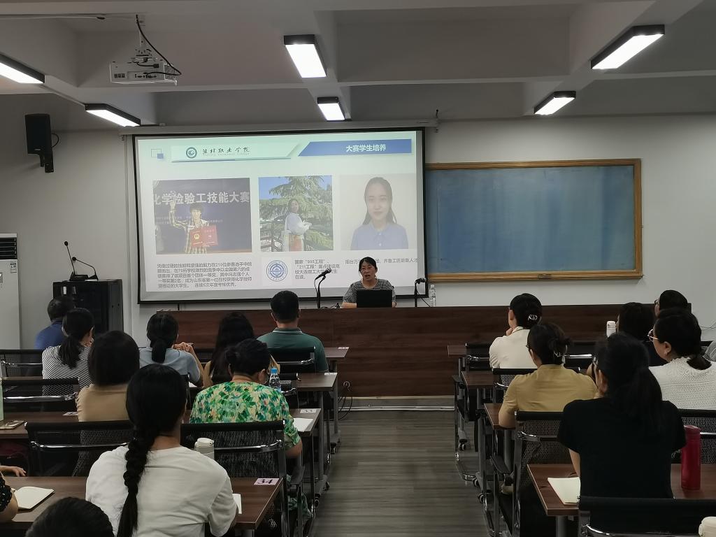 随后,来自化学工程学院的国家级技能大赛一等奖指导教师——邹芳老师开启第一讲,她从赛项情况、指导教师团队建设、学生选拔与培养以及总结反思四方面作专题交流。该院国家级在线开放课程——《外贸基础—函电与单证》主要成员徐小珺老师从为什么建设开放课程、怎样建设开放课程以及课程建设的反思三方面进行经验分享。两位老师的无私分享为该院技能大赛指导和课程建设指出了改进的方向,拓展了思路。