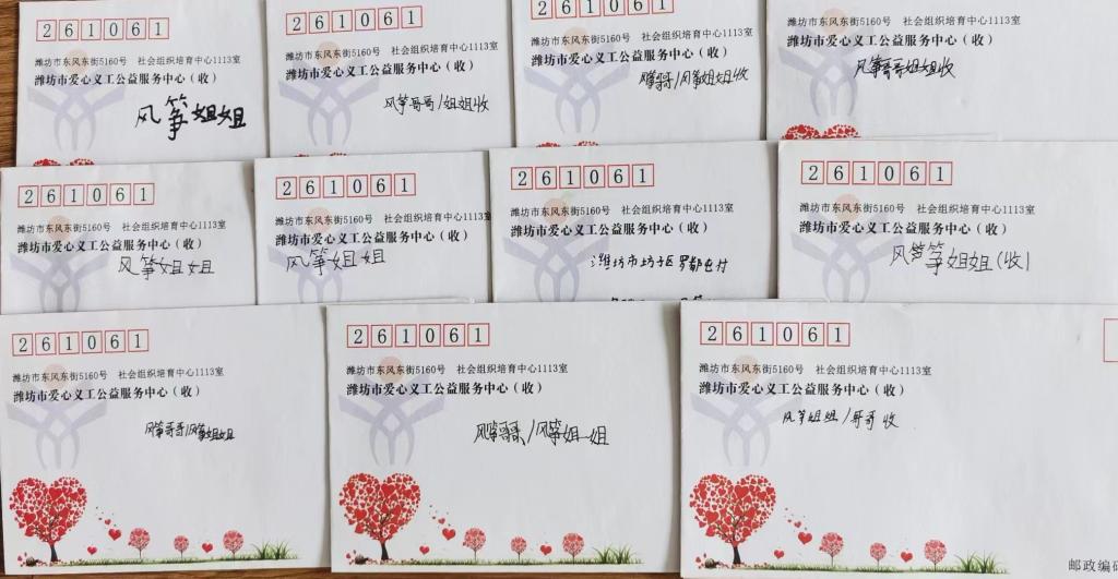 本次活动以坊子区50名困境学龄期儿童为主要服务对象,以“书”和“信”为沟通媒介,通过大学生志愿者变身“风筝姐姐”“风筝哥哥”参与其中,关注困境儿童中因家庭亲职缺位导致儿童倾诉渠道不畅,造成情感的支持系统和陪伴缺失的问题。志愿者与困境儿童结对一对一信使,大手牵小手同读一本书同写一封信,打开心灵之窗、唤醒文字记忆、体验阅读魅力。为困境儿童搭建与外界沟通的桥梁,协助构建情感支持系统,保障困境儿童的心理健康成长。