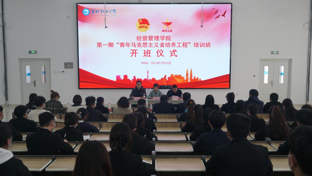 为深入学习贯彻党的二十大精神,扎实推进青年马克思主义者培养工程深入实施,提高青年学生的理论素养和实践水平,经营管理学院于3月23日举行第一期“青年马克思主义者培养工程”培训班开班仪式。经营管理学院主要负责人、分管学生工作负责人、辅导员办公室负责人出席开班仪式,全体辅导员和青马工程全体学员参加。