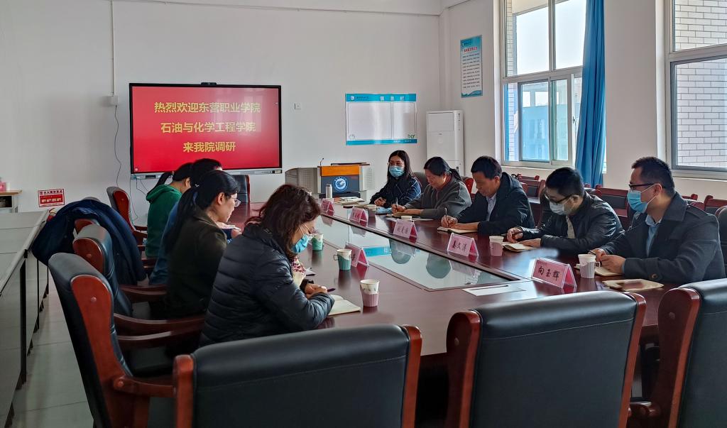3月14日,东营职业学院石油与化学工程学院综合办公室主任刘爱国一行6人来化学工程学院调研山东省职教高考题库开发和分析检验技术专业教学指导方案开发事项,化学工程学院综合办公室负责人接待客人,相关教师参加座谈。
