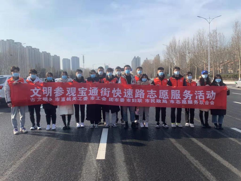 2021年12月31日,国际商务学院团总支联合“潍爱”青年志愿者协会师生一行17人参与了潍坊市宝通街快速路通车仪式之前的市民文明参观志愿服务活动。