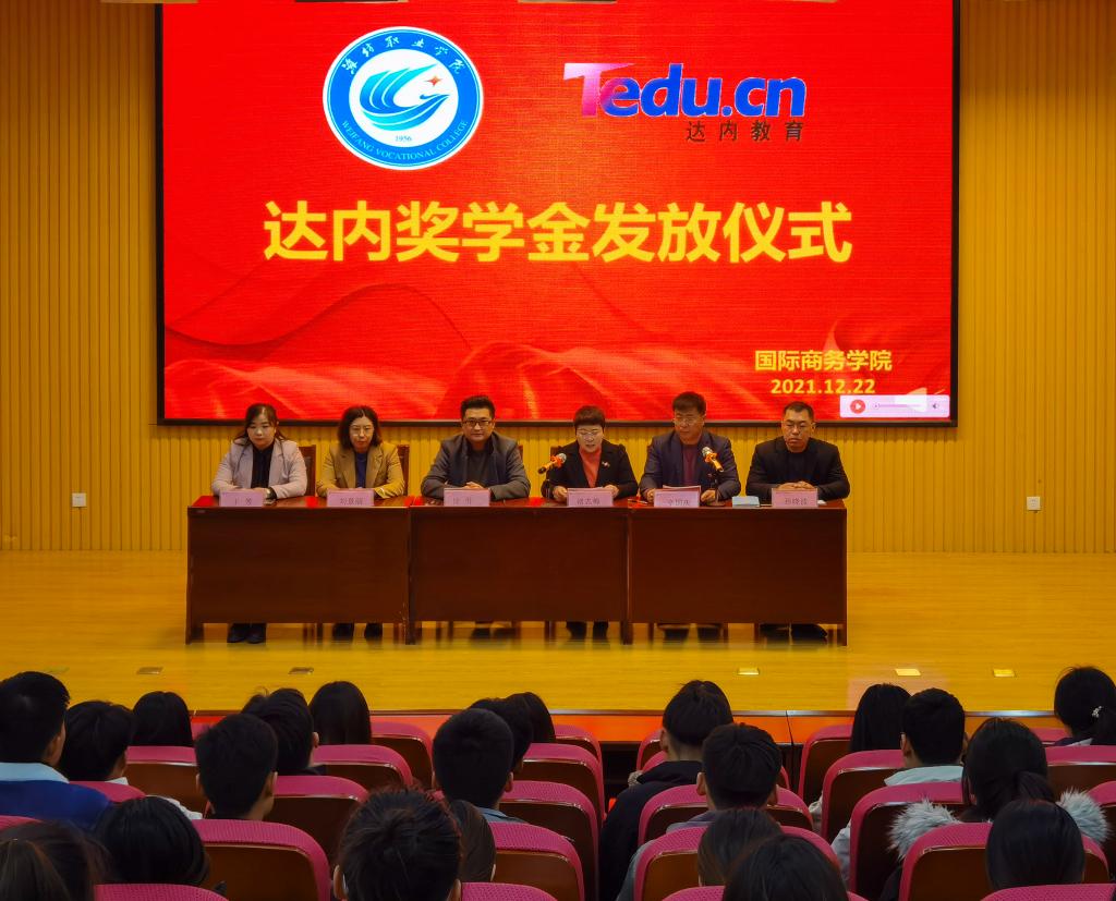 12月22日,国际商务学院在奎文校区创业中心报告厅举行2021年度达内企业奖学金颁发仪式。达内时代科技集团山东大学生实训基地总经理徐勇、驻校经理刘景丽、人力资源管理专业讲师于芳、国际商务学院党政领导班子出席了颁奖仪式。