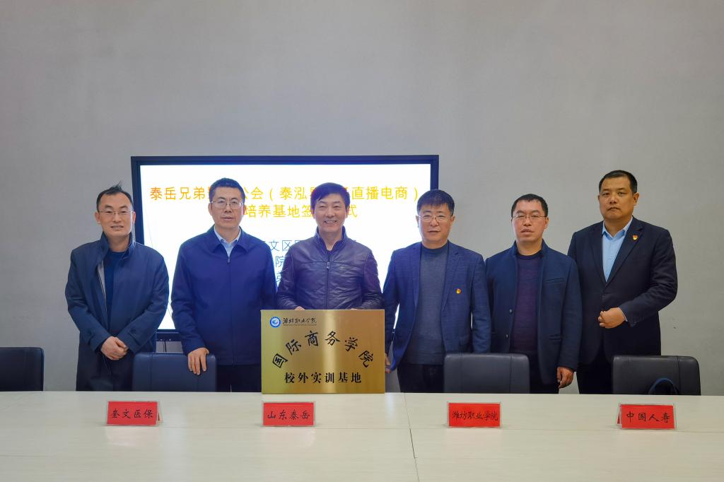 校企三方围绕服务潍坊区域经济发展、产学研合作及学生实习就业等方面进行了深入地交流座谈,对于进一步强化校企深度合作和产教融合等方面提出了具体意见和建议,达成共识。洽谈结束后,国际商务学院与山东泰岳兄弟影视有限公司、中国人寿奎文支公司签署了校企合作协议,进行了校外实训基地授牌。