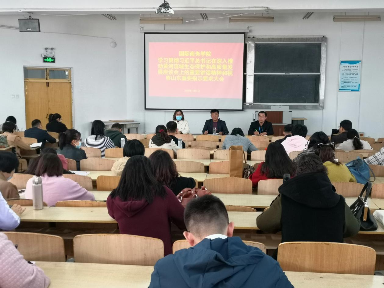 11月4日下午,国际商务学院召开专题会议,认真学习贯彻落实习近平总书记在深入推动黄河流域生态保护和高质量发展座谈会上的重要讲话精神和视察山东重要指示要求。该院党总支负责人主持会议,全体教师参会。
