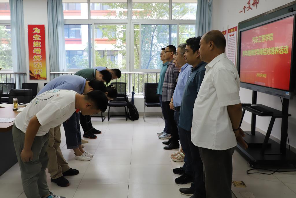 与会领导传达了青年教师双导师结对培养的相关要求,宣布培养的具体模式和师徒职责,并举行拜师仪式。beat365实行双导师培养制,为近三年进校的每位教师分别配备了一名专业技能导师和一名教学能力导师,两位导师通力合作,分别从专业实践技能提升、教学能力提升、科研及社会服务能力提升、学生管理能力提升、办公能力提升等多方面制定详细的培养目标和实施计划,建立指导台帐,学院定期召开结对培养研讨会,形成案例机制和督导机制,助力年轻教师实现快速成长。