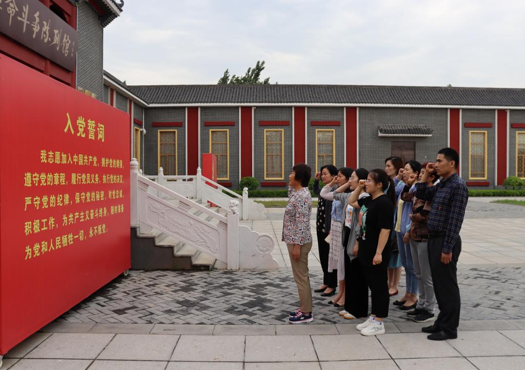 在渤海走廊革命斗争陈列馆前,全体党员面对党旗,重温入党誓言,接受党性洗礼,不忘初心,牢记使命,进一步增强每位党员民族使命感和历史责任感。