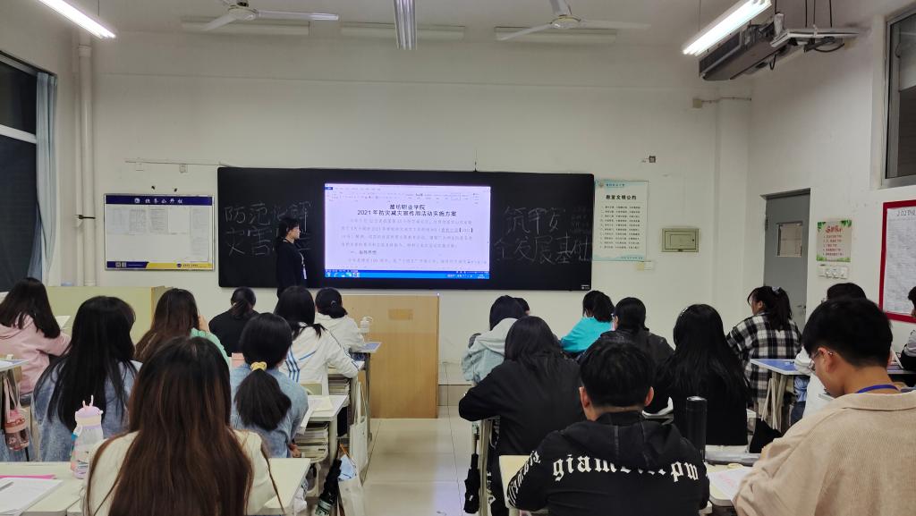 活动前期,学院通过公众号、学院板报等形式进行活动宣传。活动中,结合校园安全,突出“防范化解灾害风险•筑牢安全发展基础”主题,各班先组织观看了防灾减灾科普视频,随后各班负责人就地震发生时的各种现象以及造成的危害,引起地震的主要原因,地震后怎么自救互救等向同学们做了详细的讲解。同学们纷纷表示本次主题系列教育活动,全面且贴近生活实际,学习了有关防灾减灾救灾的基本知识,掌握了自救、互救等技巧。