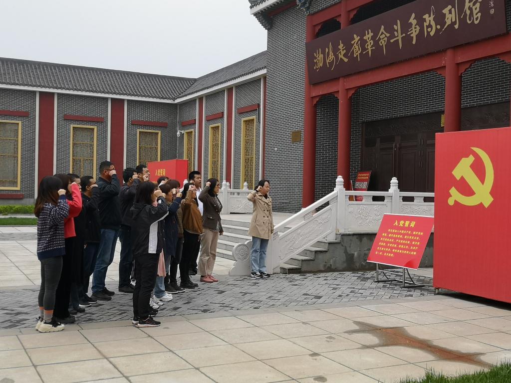 在昌邑县抗日殉国烈士祠,同志们认真聆听退伍老兵、烈士祠守护人、昌邑市优秀共产党员魏铁良老人讲述抗日战争时期昌潍大地上抗日军民的革命斗争事迹。勉励大家铭记革命先烈事迹,弘扬英雄的爱国精神和大无畏的奉献精神,在自己的岗位上努力工作,为实现伟大的中国梦不懈努力奋斗。在滨海走廊革命斗争陈列馆,同志们全面地了解了昌邑、潍县、寿光北部地区军民为保卫“渤海走廊”所进行的伟大斗争。深切感受到熊熊不熄的信仰之火、融入血脉的红色基因和激发力量的红色精神。全体同志面向党旗庄严宣誓。重温入党誓词,接受党性洗礼。