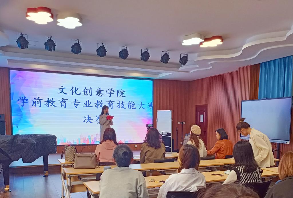 为提升学生专业技能水平,4月16日下午,文化创意学院在16号楼多功能综合实训室举行学前教育专业教育技能比赛活动。学院分管教学负责同志、学前教育专业老师出席并担任评委。