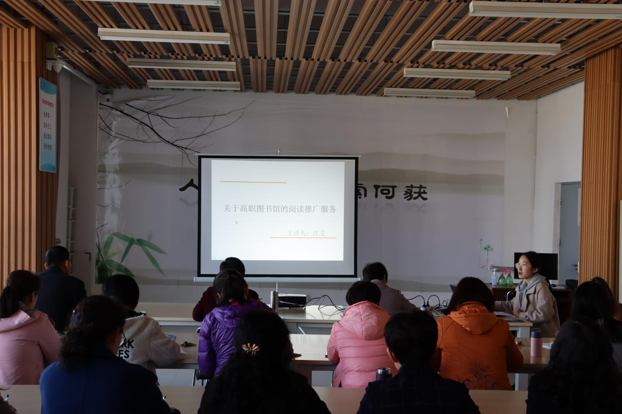 采编部沈莹老师以《高职图书馆的阅读推广服务》为题,从阅读推广含义、方式、高职学生阅读特点、阅读推广策略等方面,并结合系列优秀阅读推广案例,详细讲述了高职图书馆阅读推广的优势、途径及必要性。