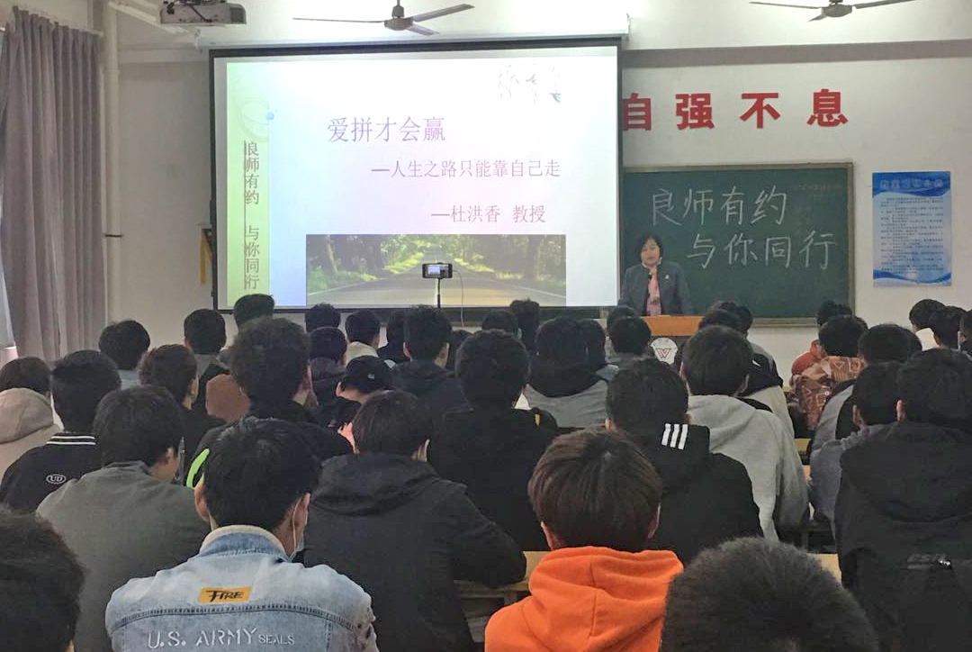 杜洪香从个人成长经历、人生感悟和教师寄语三个方面,通过自己成长过程中自立自强、刻苦学习、勤奋工作、努力拼搏的真实故事,和学生们分享了她艰辛而快乐的成长过程和不懈的奋斗历程。她严谨的学习和工作态度,不怕苦、不怕累的拼搏精神,鼓舞着每一位同学,大家一次次被她的故事所感动,不时响起热烈的掌声,现场气氛高潮迭起。互动环节中,同学们就自己成长过程中遇到的困惑踊跃提问,她一一进行了解答。最后,杜洪香鼓励青年学生要自尊自信、团结友爱、刻苦学习、勇于创新、发扬坚持不懈、顽强拼搏的精神,努力学习,不断完善自我,开启人生新篇章。