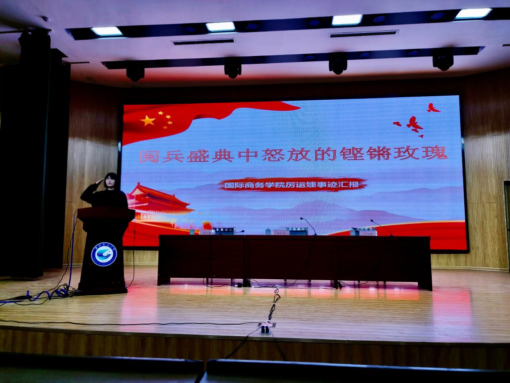 3月4日下午,参加过庆祝新中国成立七十周年阅兵式的国际商务学院优秀毕业生厉运婕事迹报告会在奎文校区16号楼报告厅举行。国际商务学院党总支负责同志、分管学生负责同志、团委学生工作处相关负责同志、团总支书记、全体辅导员及国际商务学院、文化创意学院、现代服务业学院的学生代表们参加了此次报告会。