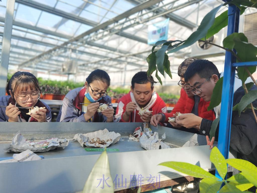 根据园林技术专业和园艺技术专业实践教学计划要求,近日,农林科技学院组织2018级3+2本科班开展了为期一个月的水仙雕刻与养护技能大比拼活动。同学们在对球根花卉水仙鳞茎球结构了解的基础上,对其进行雕刻与水培养护,并结合水仙习性进行环境调控,调整水仙株高和叶花伸展方向,实现水仙雕刻美的呈现。