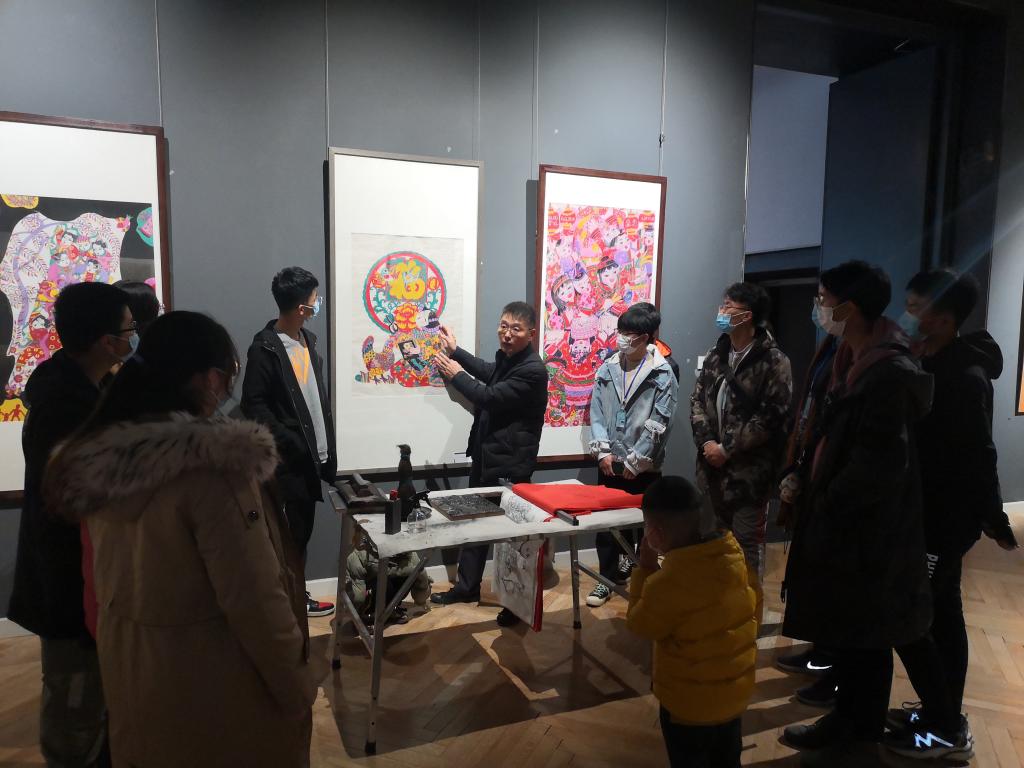 活动中,beat365潍坊民间技艺传承基地年画工作室项目严海涛老师带领2019级与2020级15名环境艺术设计专业学生,到潍坊美术馆参观了“撷古契今——潍坊年画发展与创新成果展”,并到“十笏园”文化街区非遗传承基地进行研学,向学生介绍潍坊年画的历史与现状,深入了解和学习潍坊年画新中国成立后三次改革的创新成果,亲身感受在时代变革和大文化影响下潍坊年画的新面貌。
