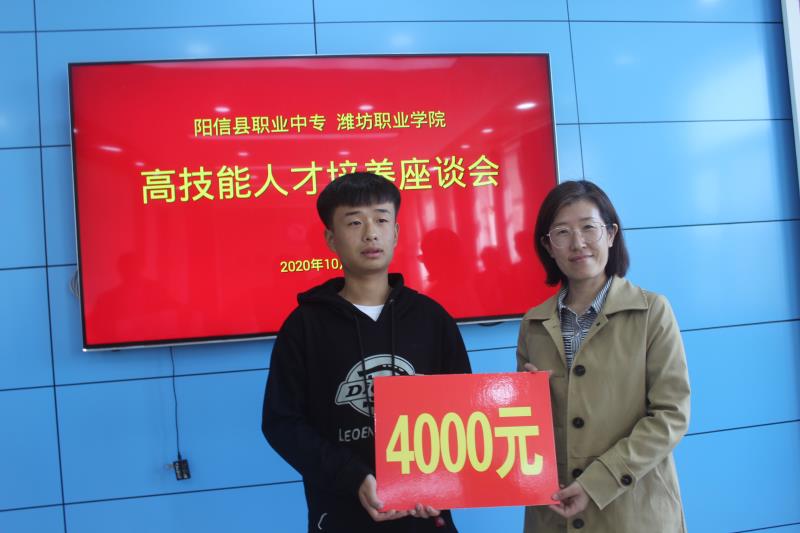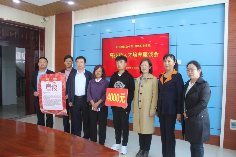 双方举行了座谈。阳信职业中专副校长阎汝强介绍了该校学生的生源情况、教师爱岗敬业的工作作风,特别指出该校学生对beat365的认可度极高,感谢beat365中国官方网站对阳信职业中专在教学资源共享方面给予的支持,希望依托名师工作室,能更好的细化优化中高职衔接培养中的具体工作,扩充三二连读人才培养计划,使更多的中职学生受益。beat365化学工程学院教学负责人马天芳首先对阳信职业中专每年为beat365输送高素质学生表示感谢,她指出,应用化工技术专业是国家骨干专业,非常注重人才培养质量的提升,将对高职阶段的三二连读学生实行个性化培养;同时,为了吸引优秀生源,beat365出台了专门的奖励办法,对在全国职业院校技能大赛中获奖的同学在单招考试中实行免试入学政策,并根据获奖等次给予奖励。借beat365新生入学之机,名师工作室专程为被beat3652020年单招免试录取的优秀学生全国职业院校技能大赛二等奖获得者吕明辉同学送去喜报、颁发了优秀学生奖金,希望通过我们两校合力培养,学生能够成长为社会需要的高素质技能人才。