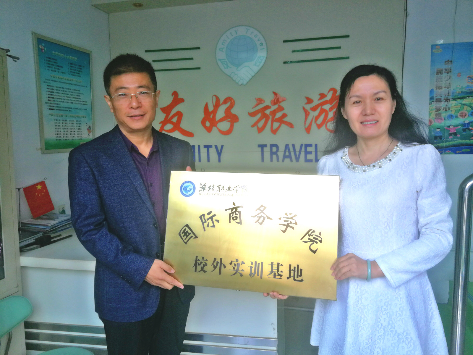 10月12日上午,国际商务学院分管副院长、旅游管理教研室及校企合作负责同志到潍坊友好国际旅行社有限公司洽谈校企合作工作,公司总经理姜在强接待。