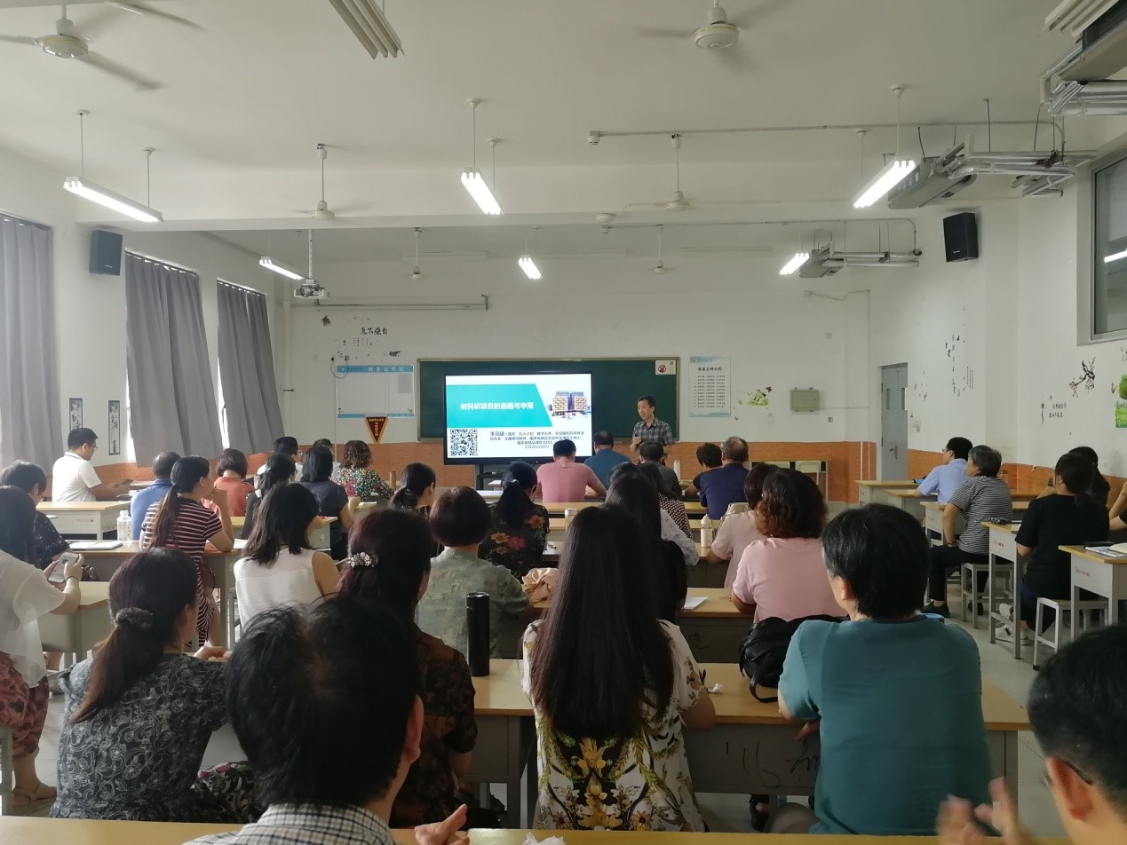 李高建教授以《教科研项目的选题与申报》为题向大家开展了讲座。李教授主要从“什么是课题、课题研究的一般程序、选题原则、如何进行选题”四个方面进行了讲授。尤其在如何选题方面李教授从“从教育教学实践的追问中提出问题”、“从教育教学经验的升华中提炼问题”等七个方面进行了详尽的讲授,开阔了大家的科研思路。李教授在讲授过程中以实际案例为载体并结合学院双高建的实际情况对课题申请过程中遇到的问题、困惑与解决方法等进行了深入浅出的阐述。