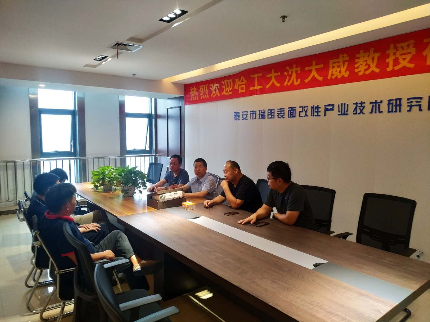 在泰安市瑞郎表面改性产业技术研究院,解永辉介绍了学院“双高”专业建设情况、人才培养和校企合作项目。泰安市瑞郎表面改性产业技术研究院王孝文博士介绍了研究院目前的项目开展状况及后续的产业发展情况,上海大学材料科学与工程学院黎军顽院长介绍了与研究院开展的合作及材料科学发展的现状,提出了在人才培养与职业教育与企业合作的重点。