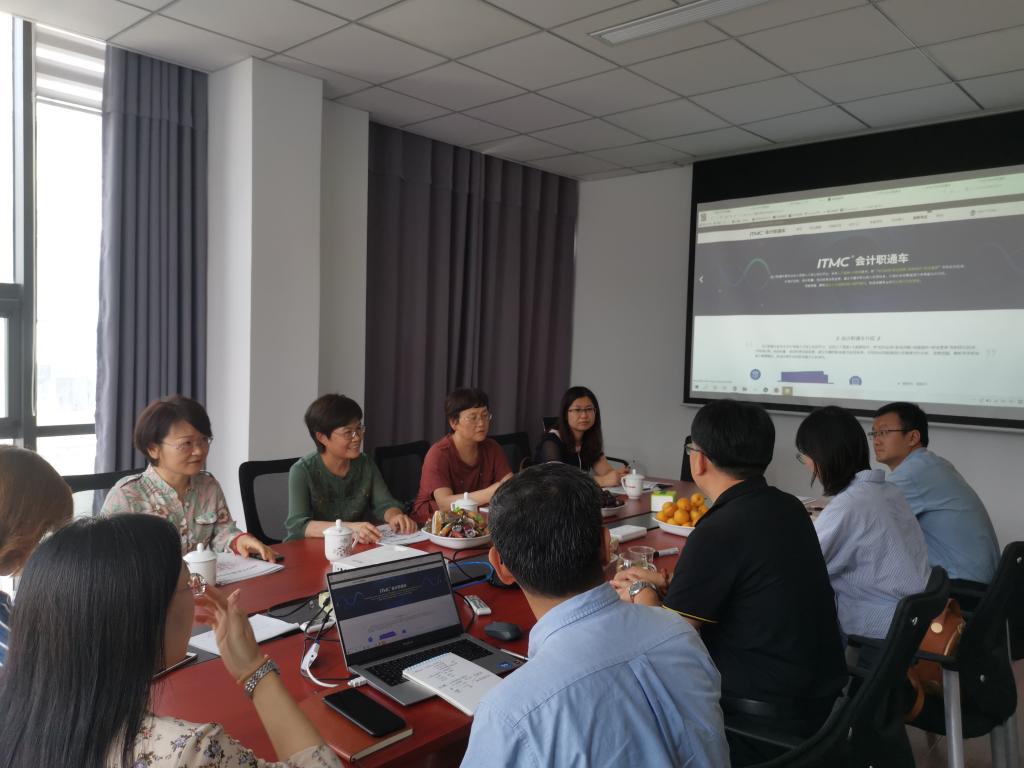 会计专业骨干教师与中教畅享科技有限公司相关专家,从三教改革的理念出发,由云题库、云实训库和云经验库构成的会计直通车囊括了学生日常学习、测验和考试、仿真单项和综合实训等教学的各个环节,真正实现做中学和理实一体化,将职业岗位与专业课程对标,实现课程学分化、学分证书化。双方就会计专业的转型发展、会计人才的培养模式,结合1+X证书的培训考试现状等进行了深入探讨,并就下一步会计核心课程校企共同实施“理实一体化模块化”教学试点具体措施的落地交换了意见,取得了实质性的成果。(马骁驰 吴洋晖供稿)