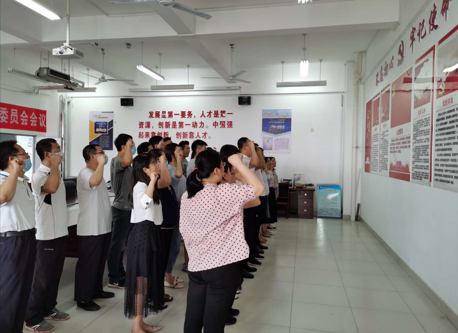 为进一步强化基层党员干部的学习教育,增强党员教师队伍的凝聚力,根据学院党委《关于组织开展庆“七一”系列活动的通知》要求,6月25日,化学工程学院党总支组织全体党员教师在木泽楼B207党员活动室开展了“重温誓词忆入党初心永葆先进本色作贡献”活动。