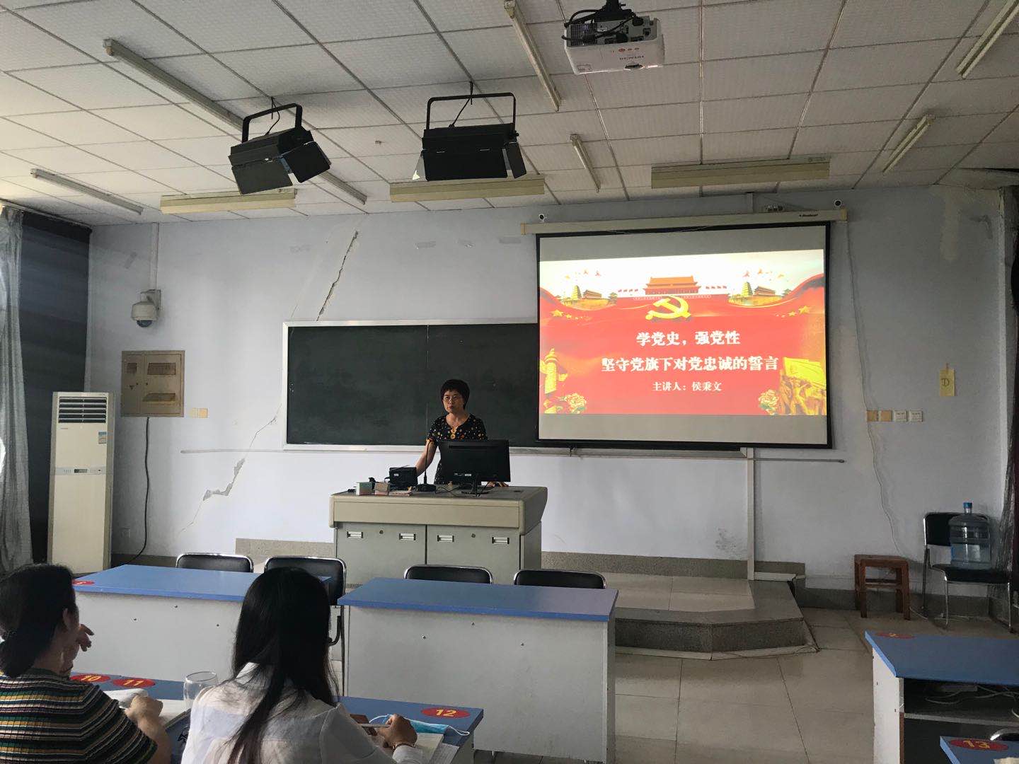 党总支书记带领全体党员重温入党誓词,并作了题为“学党史,强党性,坚守党旗下对党忠诚的誓言”的专题党课。党课以PPT的形式,运用党的历史上不同阶段涌现出的大量优秀党员代表的生动案例,从学党史,“传承红色基因培育绝对忠诚的政治自觉,领会忠诚内涵强化绝对忠诚的行动自觉,把握实践要求书写绝对忠诚的时代篇章”等三个方面,进行了生动的讲解,引导同志们进一步深刻理解什么是“对党忠诚”以及新时代共产党人传承红色基因,加强先进性、纯洁性建设,保持对党忠诚的重要意义,教育引导同志们牢记党旗下的誓言,在工作、学习、生活中发挥先锋模范作用。