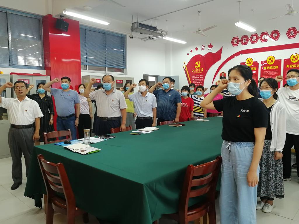 会议最后,党总支书记带领全体党员重温入党誓词,全体党员面向党旗庄严宣誓,对党忠诚,为共产主义奋斗终身。