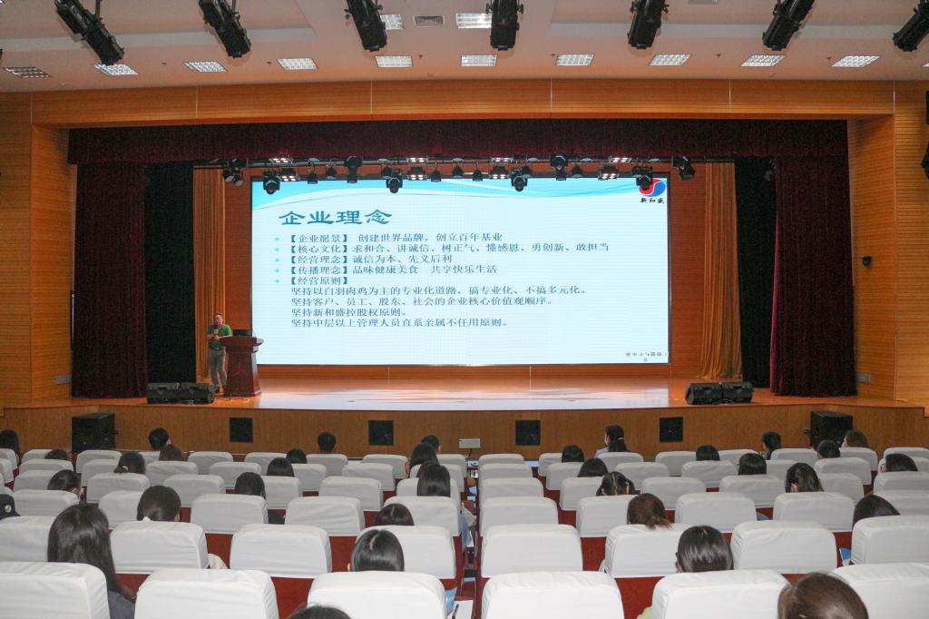 为顺利推进2021届毕业生的顶岗实习工作,6月4日下午,食品药品学院邀请山东新和盛农牧集团有限公司总裁温海涛等一行7人来校进行企业宣讲,宣讲活动在图书馆报告厅举行。食品药品学院领导班子、辅导员班主任、食品专业教师及2018级食品专业在校生参加了活动。