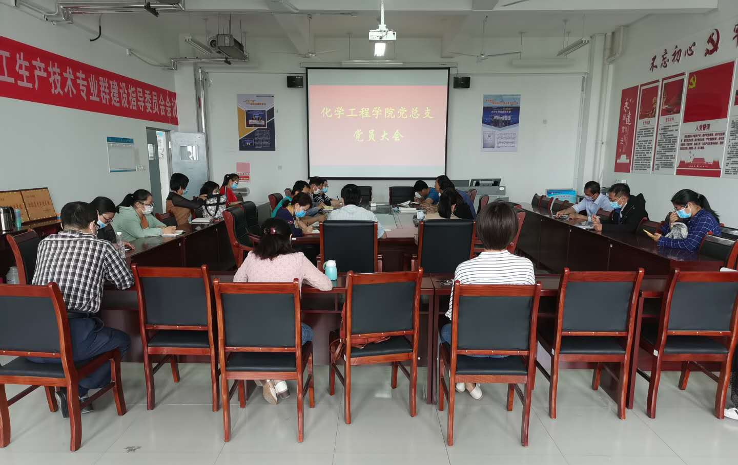 5月29日,化学工程学院党总支在木泽楼B207会议室召开全体党员大会,学习贯彻学院2020年党建和党风廉政建设会议精神。会议由党总支书记主持,全体党员参加会议。