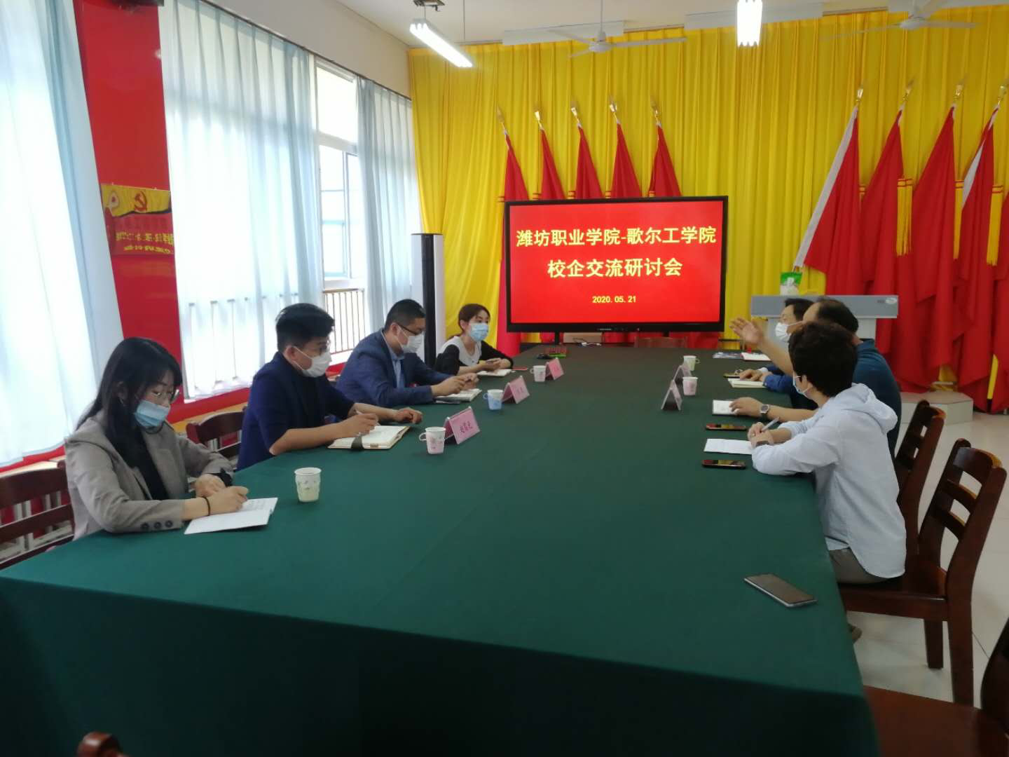 会上,校企双方首先就2018级现代学徒制“匠造专班”学生返校问题进行了探讨,由于目前的疫情问题,校企双方负责人从返校后学生的住宿问题、小班上课、错时错峰就餐等具体细节问题进行了商讨,深入探讨了学生返校后的安全问题以及上课实训等问题。随后,双方就2019级现代学徒制人才培养方案的修订问题及2020级现代学徒制“匠造专班”的合作培养问题进行了深入商讨,歌尔工学院主要负责人表示后期会进一步优化现代学徒制“匠造专班”的人才培养体系,进一步提升人才培养质量,希望不断深化校企双方的合作力度,实现互利共赢的良好局面。